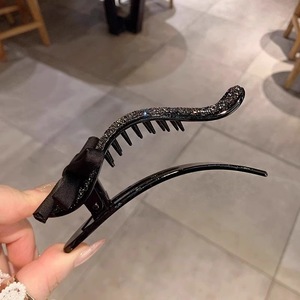 韩系闪钻蝴蝶结鸭嘴夹子轻奢气质感后脑勺盘发卡发夹简约百搭发饰