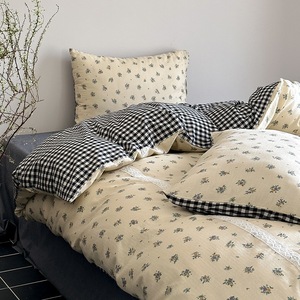 复古美式乡村丨小碎花格子 酥软双层纱纯棉纱布四件套
