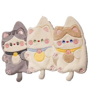 网红卡通猫咪珊瑚绒小毛巾擦手巾挂式厨房超强吸水加厚卫生间儿童