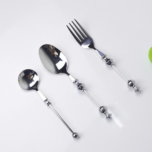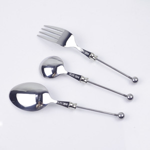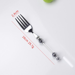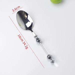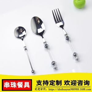 跨境串珠餐具家用diy不锈钢勺子叉子甜品圆勺304不锈钢一体成型勺