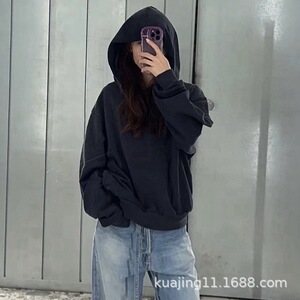 海外服装批发AC2025新款水洗复古做旧破洞1996印花连帽卫衣(原标)