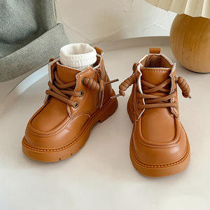 2025秋冬新款女童英伦风单靴男童马丁靴儿童侧拉链时尚短靴单靴潮