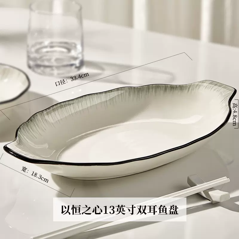 ➷↤↤↤以恒之心-13英寸双耳鱼盘(适合2斤~3斤鱼)↴↴↴♜