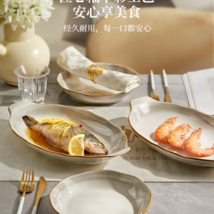 陶瓷鱼盘家用新款蒸鱼盘子感大号鱼碟子双耳鱼碗鱼盆