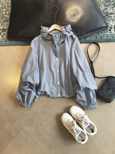 衣录色织小细纹 一体连帽蝙蝠袖廓形薄外套 H35331一件代发