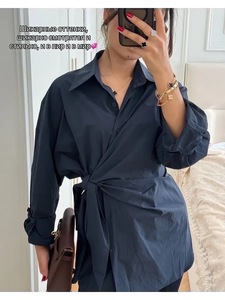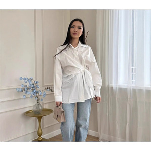欧美跨境侧腰绑带设计感衬衫女新通勤显瘦百搭衬衣俄罗斯