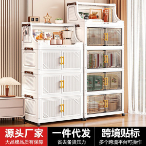 折叠收纳柜家用客厅置物柜卧室开门式储物柜子多层落地杂物置物架