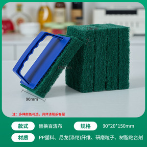 厨房塑料手柄金刚砂百洁布加厚卫浴去污厨房清洁刷锅底神器可换