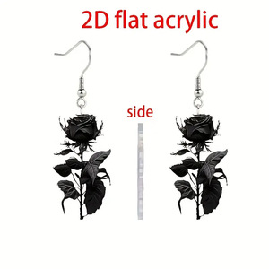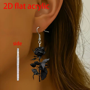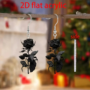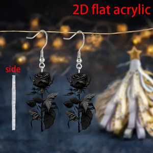 跨境热销黑色玫瑰花耳环平面亚克力万圣节暗黑礼物派对黑玫瑰耳饰
