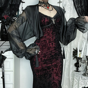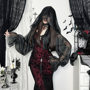 XS25208暗黑系女巫季黑色连帽开衫 2025新款万圣节哥特风罩衫上衣