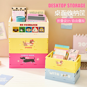 D可折叠桌面收纳筐家用杂物整理盒高颜值化妆品零食可堆叠储物