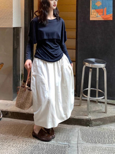 2025早秋新款韩系简约日常百搭气球型设计感半身裙女高腰A字伞裙