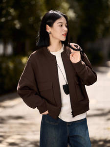 哥家商场同款女装2025秋季内里薄绒版工装风棒球外套休闲上衣女