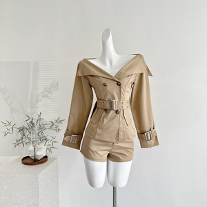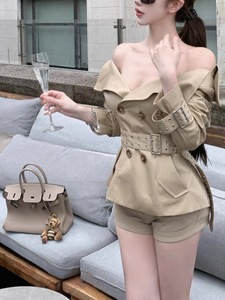 【经济上行】复古大翻领收腰双排扣小个子短款风衣外套女