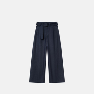 丹宁蓝牛仔裤女2025秋季高腰显瘦休闲舒适免洗黑科技系带阔腿裤子