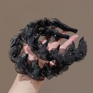 闪钻网纱高颅顶发箍女款高级感洋气时尚带齿防滑洗脸头箍压发发卡