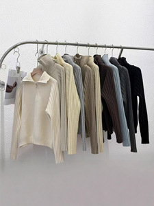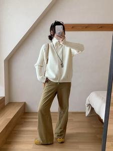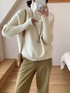 坑条毛衣外套女2025秋冬新款跨境韩系慵懒风宽松拉链针织开衫上衣