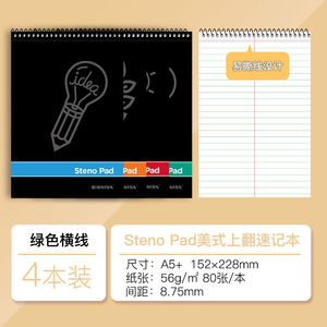 凯萨KAISA上翻线圈速记本A5黑色螺旋单词本分栏记忆横线口译本