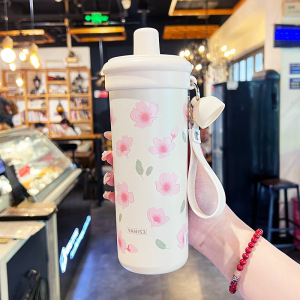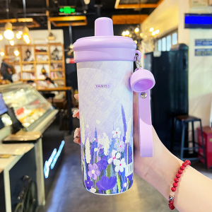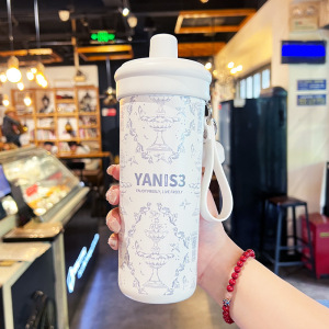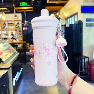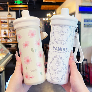 女生保温杯2025新款高颜值316吸管杯便携大容量学生上学专用水杯