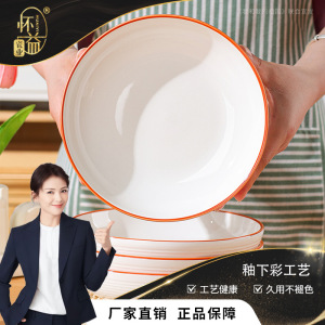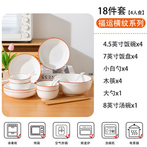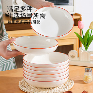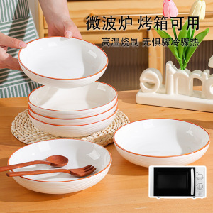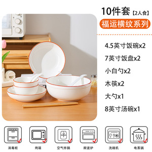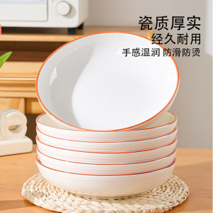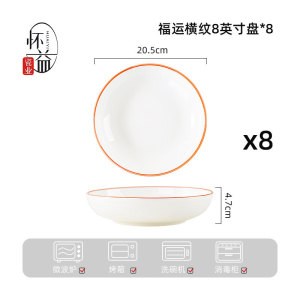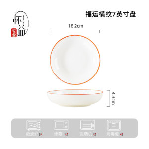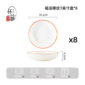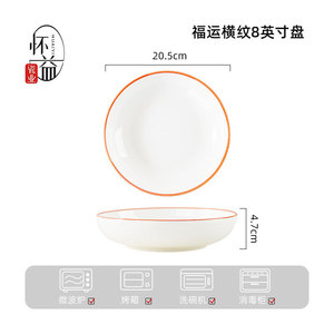 福运横纹高颜值餐盘陶瓷盘子家用碗碟套装高级感高温烤花碟子菜盘