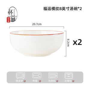 福运横纹8英寸汤碗【1个】(30个/箱)