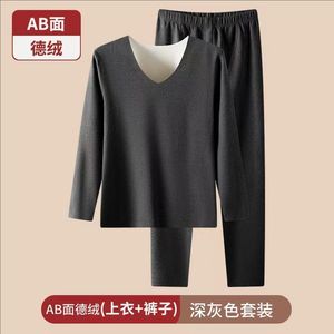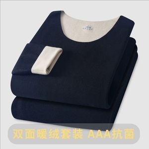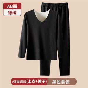 冬季男士AB面德绒无痕保暖修身内衣加绒加厚秋衣秋裤情侣打底套装