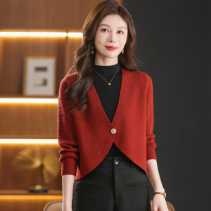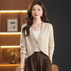 一粒扣纯色毛衣女披肩女2025年春秋新款V领针织开衫上衣外套女