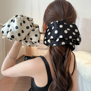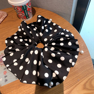 复古波点大肠发圈2025新款仿珍珠吊坠扎丸子头超大号发绳气质发圈