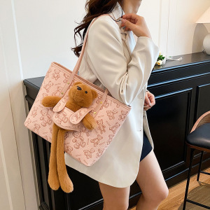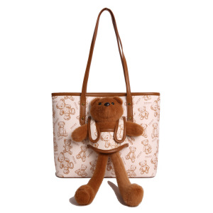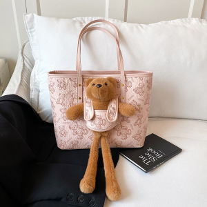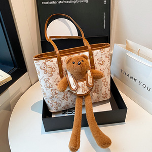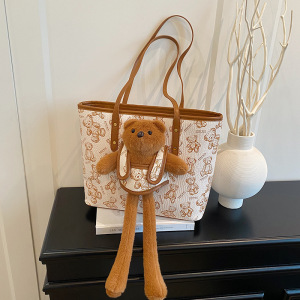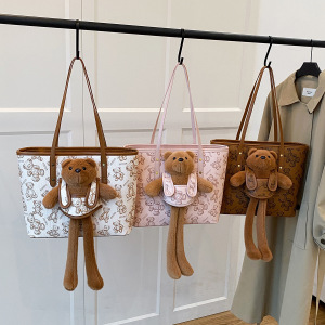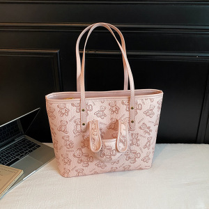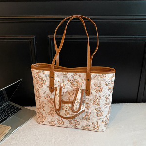 2025新款小熊卡通印花托特包女式购物袋通勤包极简时尚单肩手提包