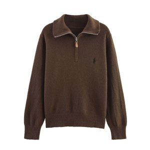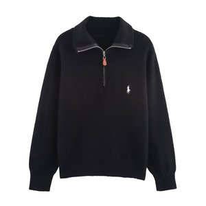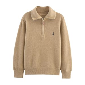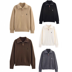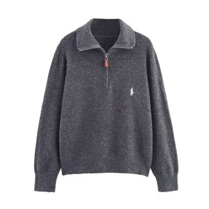 PB&ZA韩系刺绣图案半拉链翻领毛衣秋冬季新款宽松百搭针织衫上衣