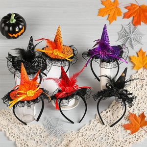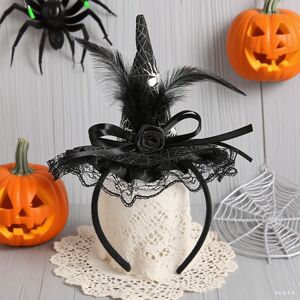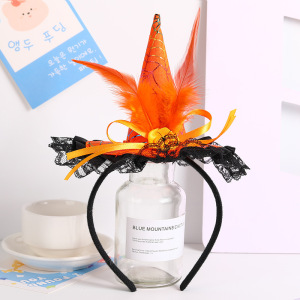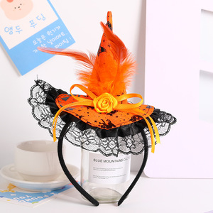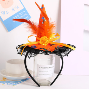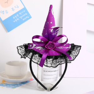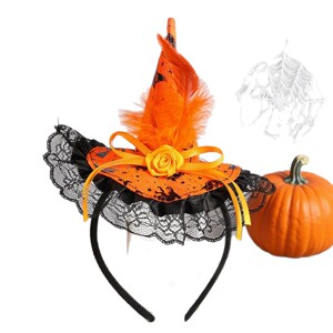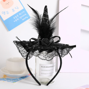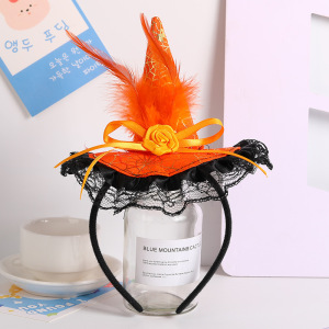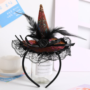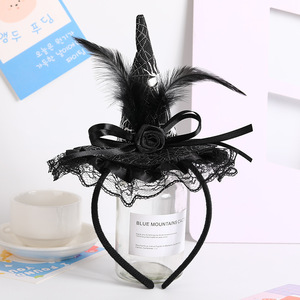 立体万圣节女巫帽发箍鬼节派对装饰蜘蛛网蕾丝边舞会表演帽子发箍