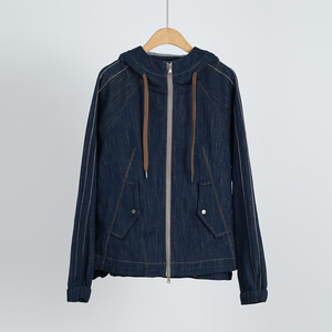 意大利B*C 轻奢休闲D制金银丝线复古水洗时髦牛仔连帽夹克外套女