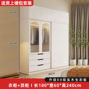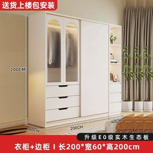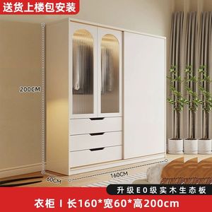 实木衣柜家用卧室奶油风推拉门衣橱现代简约出租房落地立式收纳柜