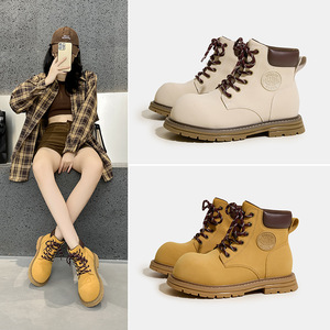 马丁靴女2025秋季新款厚底大头英伦风短靴户外休闲百搭大黄靴女款