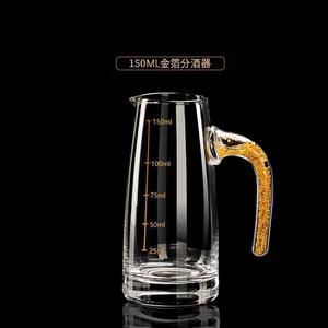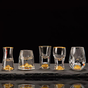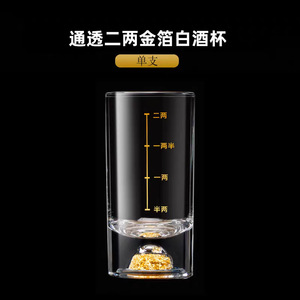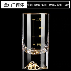 高档中式二两白酒杯分酒器套装家用 创意金山金箔100ml带刻度酒盅