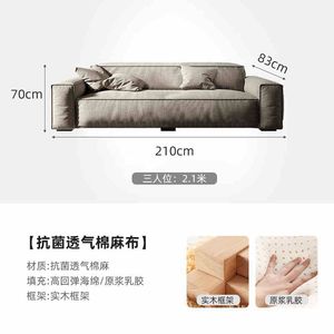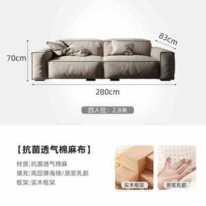 日式侘寂风棉麻布艺沙发组合客厅直排四人位意式轻奢极简直排沙发