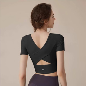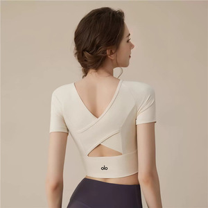 美国ALO透气瑜伽服女健身衣普拉提套装短袖上衣带胸垫瑜伽服