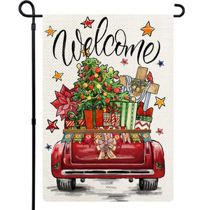 跨境亚马逊热销圣诞节花园旗庭院装饰雪人圣诞树旗帜门口欢迎旗子