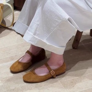 羊皮版~法式圆头一字扣带芭蕾舞单鞋浅口简约复古平底玛丽珍鞋女