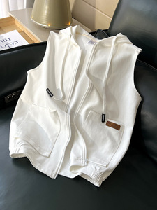 马甲女春秋款运动休闲纯色外穿背心连帽开衫无袖卫衣马夹带帽外套