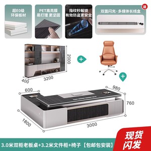 【E0级环保板材】双侧柜3.2米老板桌+椅子