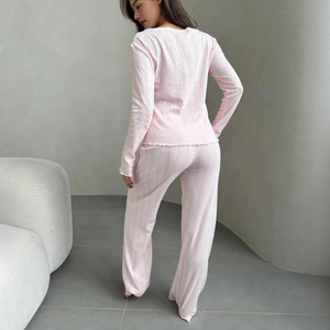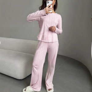 欧美跨境女装纯色针织提花长袖长裤睡衣套装秋季新款可外穿家居服