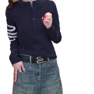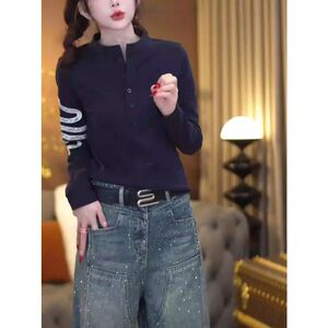 大码蛇年设计感排扣长袖t恤女春季2025新款宽松显瘦遮肉外穿上衣