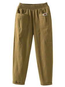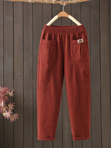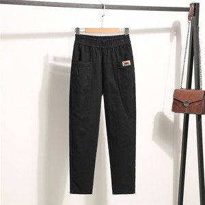 纯棉妈妈休闲裤女春秋新款松紧宽松中年直筒裤高腰百搭九分哈伦裤