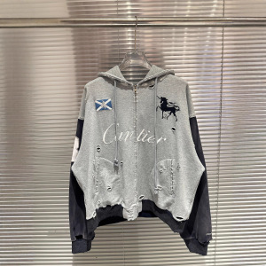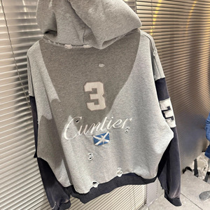 G/R 25ss重工拼色做旧破坏复古刺绣战马拉链帽衫