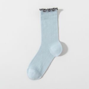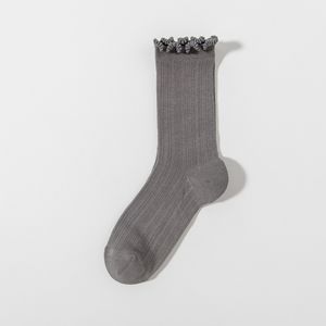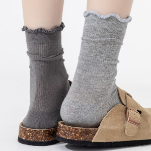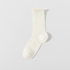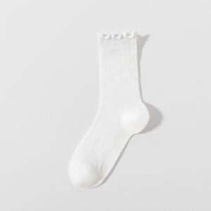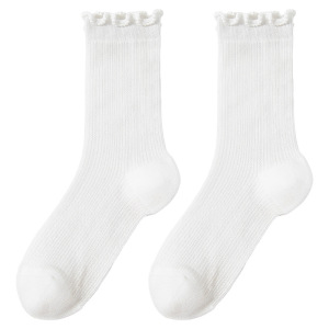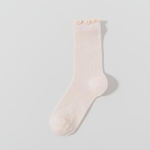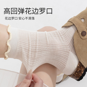 白色袜子女夏薄款网眼镂空中筒袜无骨甜美花边棉袜纯色简约堆堆袜
