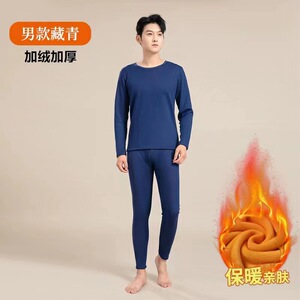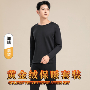 秋冬黄金绒保暖内衣男女套装加绒加厚保暖衣长袖圆领情侣秋衣秋裤