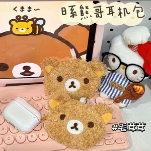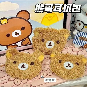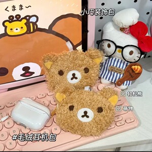 卡通日系毛绒轻松小熊小红书造型零钱包迷你卡包便携耳机包挂饰包