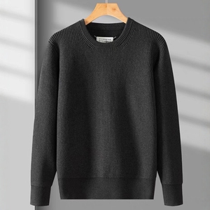 马家四角秋冬休闲羊毛衫毛衣灰黑色圆领宽松套头针织衫男女同