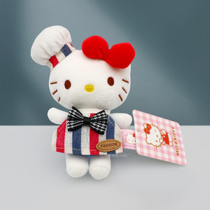 新款Kitty厨师帽条纹围裙套装可爱凯蒂猫玩偶手工diy娃娃替换配饰